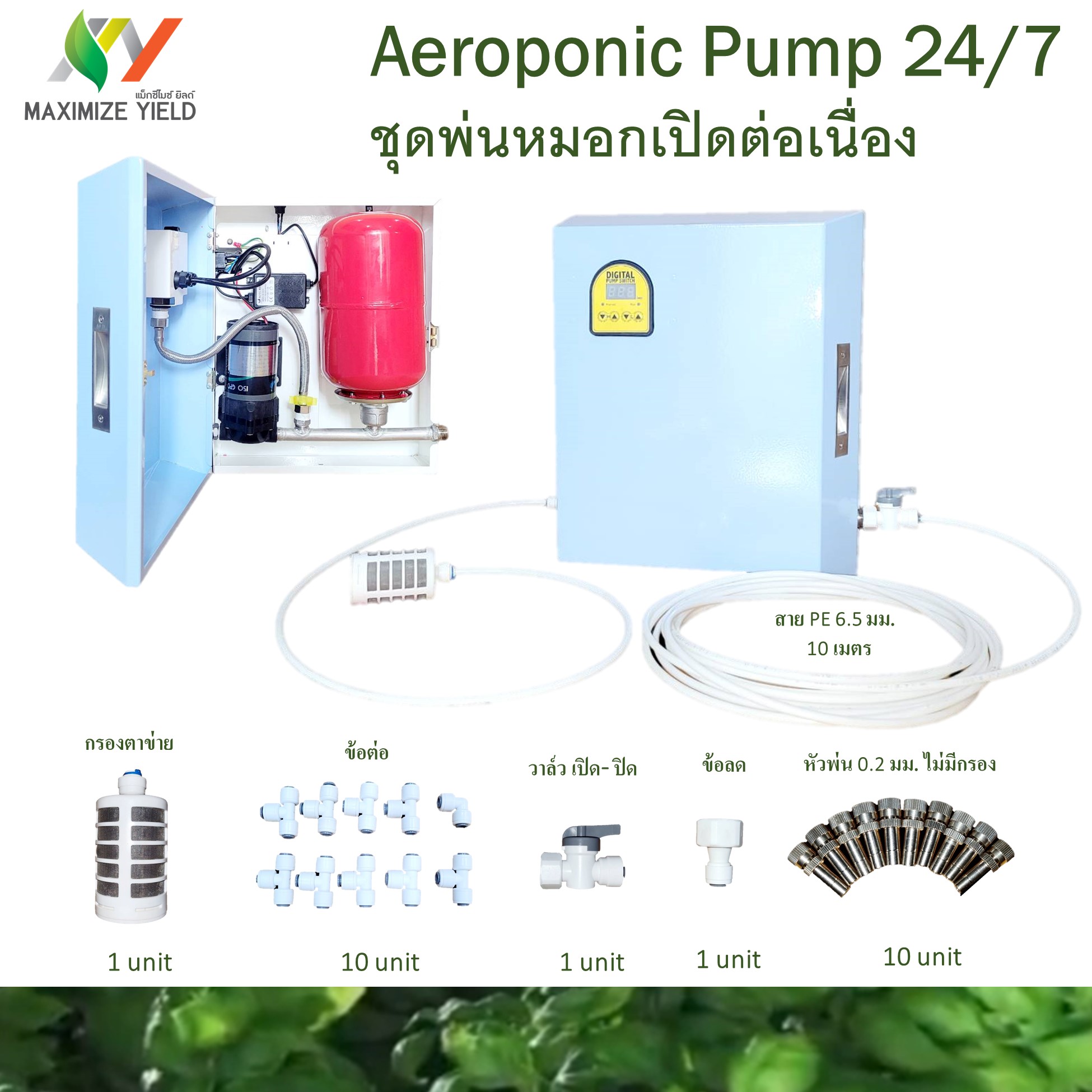 ชุดพ่นหมอกปลูกพืชระบบแอโรโพนิกส์ปรับแรงดันด้วยดิจิตอลเกจ์วัดแรงดัน ถัง 5 ลิตร 10 bar/150 GPD/24V