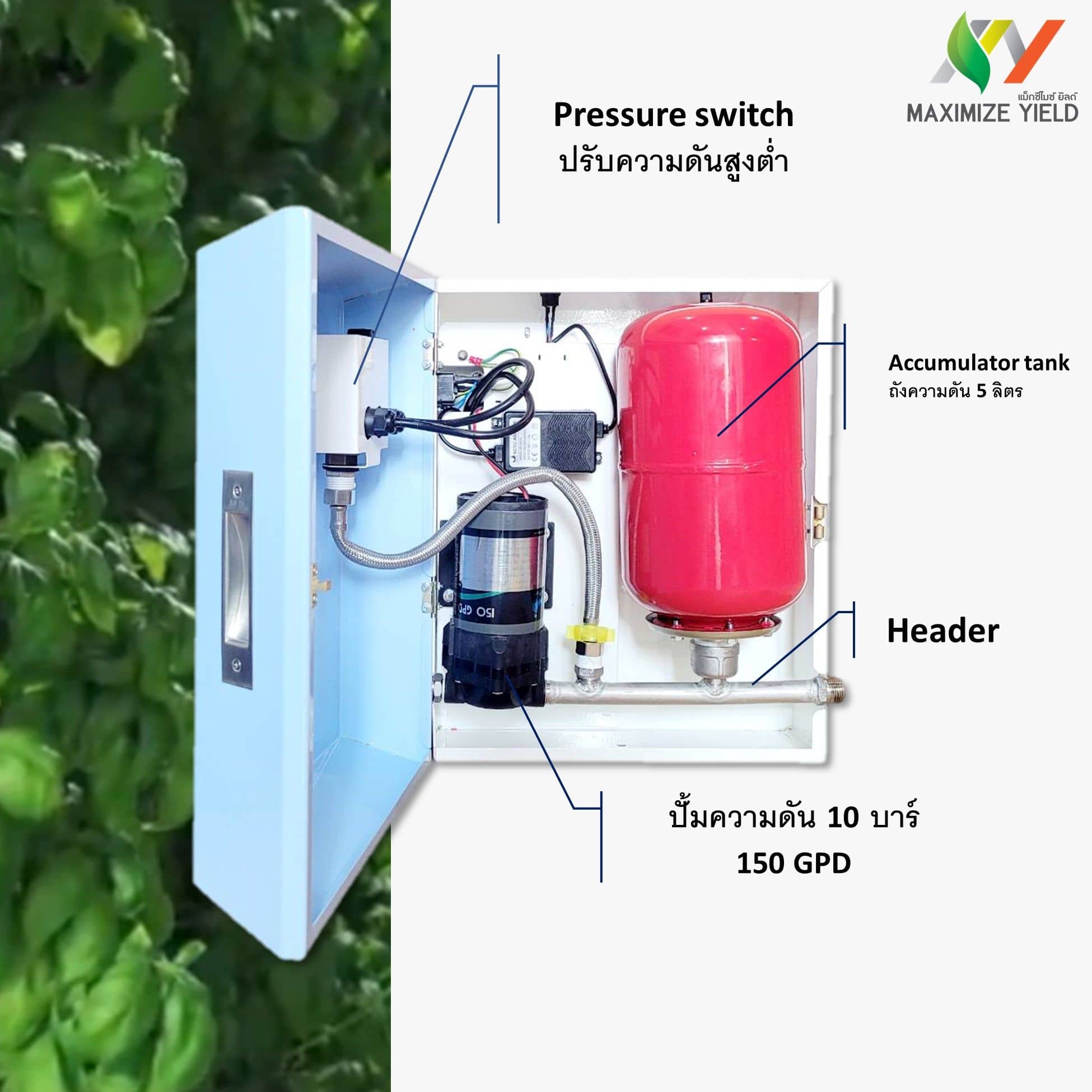 ชุดพ่นหมอกปลูกพืชระบบแอโรโพนิกส์ปรับแรงดันด้วยดิจิตอลเกจ์วัดแรงดัน ถัง 5 ลิตร 10 bar/150 GPD/24V